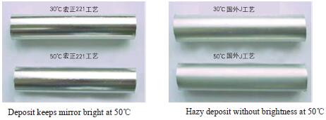 When the bath temperature is 50℃, the coating is still mirror brightness bright.